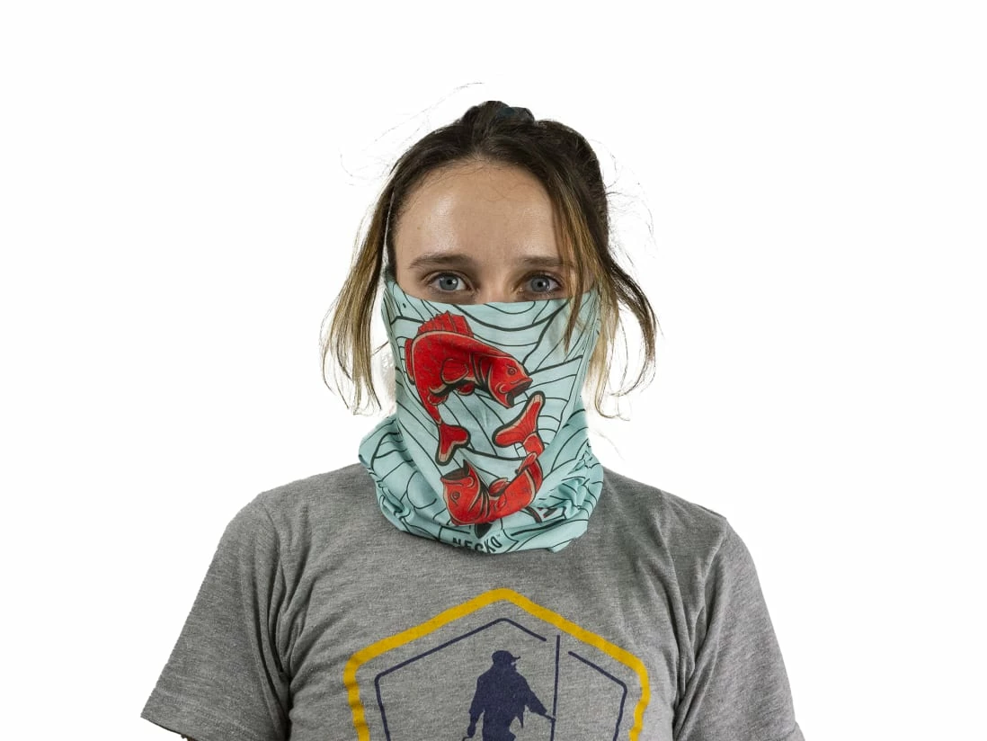 The 10,000 Fish Necko brings a touch from a premium fishing brand to an ultra-comfortable face shield. The sky blue and red design are vibrantly printed to comfortable cotton fabric to ensure long-lasting comfort. The 10,000 Fish Necko works on windy days, sunny weather, and everything in between; the added layer of the face shield is a must-have for any serious angler.