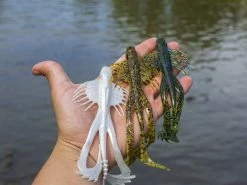 Rig the Zuchi Bug on a Texas or Carolina rig. Drop, drag, and slide through the depths. The beefier the setup, the bigger fish. Pitch and flip into heavy cover to find your next trophy. Subtle twitches with your rod will cause the claws, wings and tail to flap and flail like nothing else under the water. This baby won’t be coming home alone.