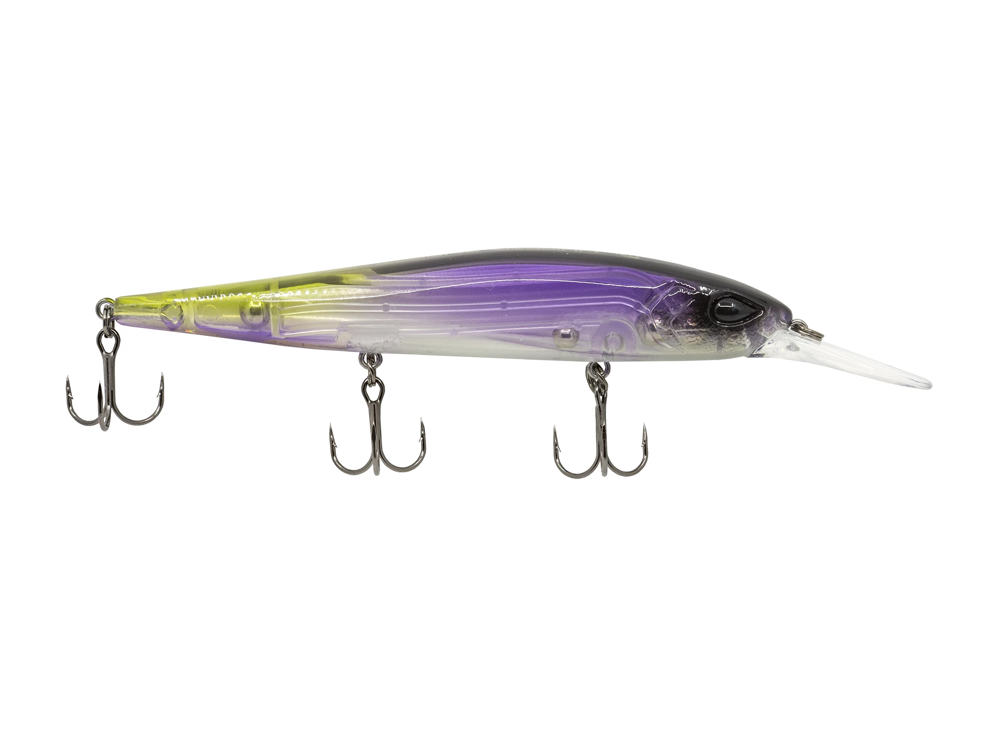 The 13 Fishing Whipper Snapper is the ultimate baitfish imitator for the middle part of the water column. Its elongated bill helps get this bait down to moderate depths with just a few cranks, allowing for a slow, subtle, twitching presentation in the strike zone. That’s a look that triggers attacks from hungry fish. When predators move in for the kill, the lure’s natural finish and baitfish details seal the deal. After the strike, three chemically sharpened VMC treble hooks take over. When you need an eye-catching bait to show roaming or schooling fish, the Whipper Snapper from 13 Fishing can’t be beat. Add this awesome jerkbait to your tackle box!