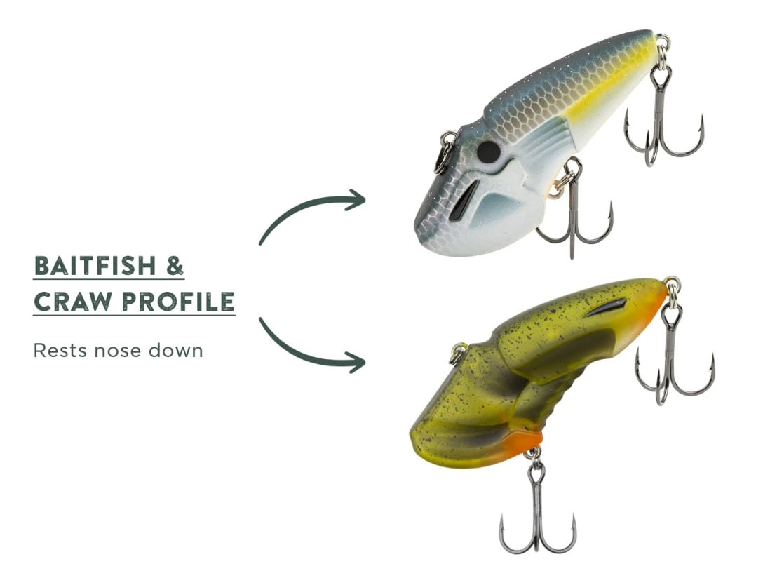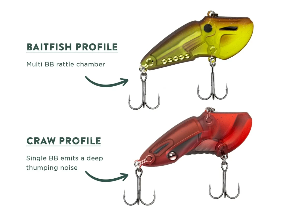 BioSpawn has moved into a new phase; the crankbait. The RattleBot is a lipless crank genetically engineered to imitate two universal bass snacks: The crawfish and the baitfish. The BioSpawn Rattlebot features two model options inspired by the natural look of crawfish and minnows. After conceptualizing, developing, lab testing, and finally catching fish, the BioSpawn Rattlebot is ready to ravage the water.