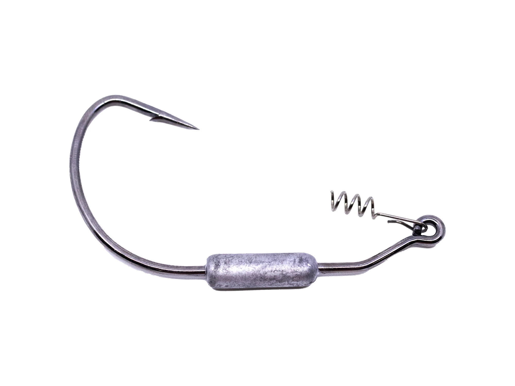 A weighted hook made to perfectly pair with the Googan Baits Saucy Swimmer. This offset shank has a metal coiled bait keeper, to keep those soft plastics on nice and secure. A natural fall from the weight centered on the shank. Sink or swim this baby into the strike zone with your favorite juicy swimbait.