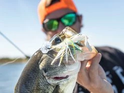 The Googan Squad Clickbait is a hybrid vibrating jig with the flash of a bladed jig, the swimming action of a scrounger, and unique vibration and flash that fish have never felt. Listen for the distinctive Clickbait clack when the lure’s blade bangs off the leading metal blade and wire.