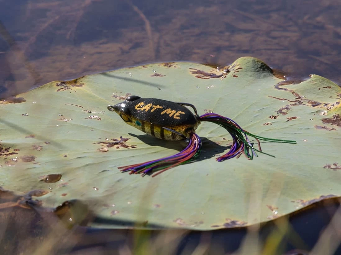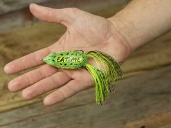 This amphibian is a 100% weedless, hollow-bodied hero. It’s finished with some tasty details that allow it to catch fish in the thickest slop. Like, an angled nose that prevents mucky buildup. Protective tubing around the hook that blocks water from entering the body. Its hooks are flush with the body, making it completely weedless. Added weights, so you can cast it far and cover plenty of water. The rubber legs give this bait a lively action. They’re fastened to the bait from the inside to prevent them from falling out. Even after the harsh treatment dished out by aggressive bass, pike, or other frog-loving species.