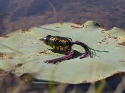 This frog can still walk the walk! “Walk the dog” by keeping your rod tip pointed down, and applying quick twitches on a slackline.