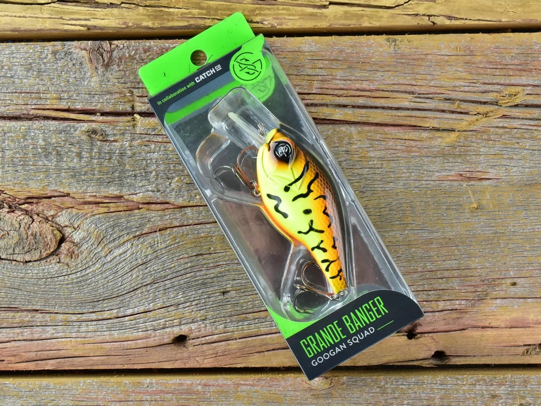 The Googan Squad Grande Banger is a wide wobbling big boy crankbait, designed by a legendary group of YouTube anglers. Together, the Googan Squad and the Catch Co. built a high performing crankbait designed to catch mondos. The upsized profile from the Grande Banger displaces more water when compared to other crankbaits, which increases the itβs drawing power.Β