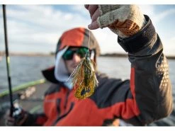 When fish hang out in dense grass, the opportunity to ambush baitfish is one of the reasons they do it. You need a bait that can get into the strike zone and then present a convincing baitfish profile. Enter the swim jig. The Googan Squad Grass Hero is a swim jig that’s designed to penetrate heavy vegetation on the fall and then glide through the slop with ease, attracting predators and triggering vicious attacks. This bait features a slender head that narrows to a point near the eye of the hook. That makes it move more easily through vegetation. Add a paddle tail trailer for a wobbling action and thumping vibration. This bait is equipped with a strong, super-sharp hook and comes in a variety of fish-attracting color patterns.
