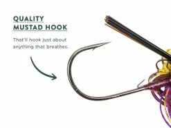 The Googan Squad Gridiron Jig is a skirted football jig designed for targeting offshore bass lurking around hardcover and structure. The term ‘’Football Jig’’ comes from the elongated head design that looks like a football. This head shape helps baits slip through cracks, crevices, and hangups. The Gridiron jig also maintains an upright positioning while working its way through rocks and structure. Use the Googan Gridiron Jig whenever fishing deep rocks, ledges, points, and hardbottom areas. The light weedguard and thinner hook gauge will help you connect with fish on longer hooksets. Each Gridiron Jig has a ribbed head design, which adds to this jigs performance and looks. Each Googan Jig Includes: Hand Tied Skirt Double Trailer Keeper Mustad Hooks Weight size printed on jighead
