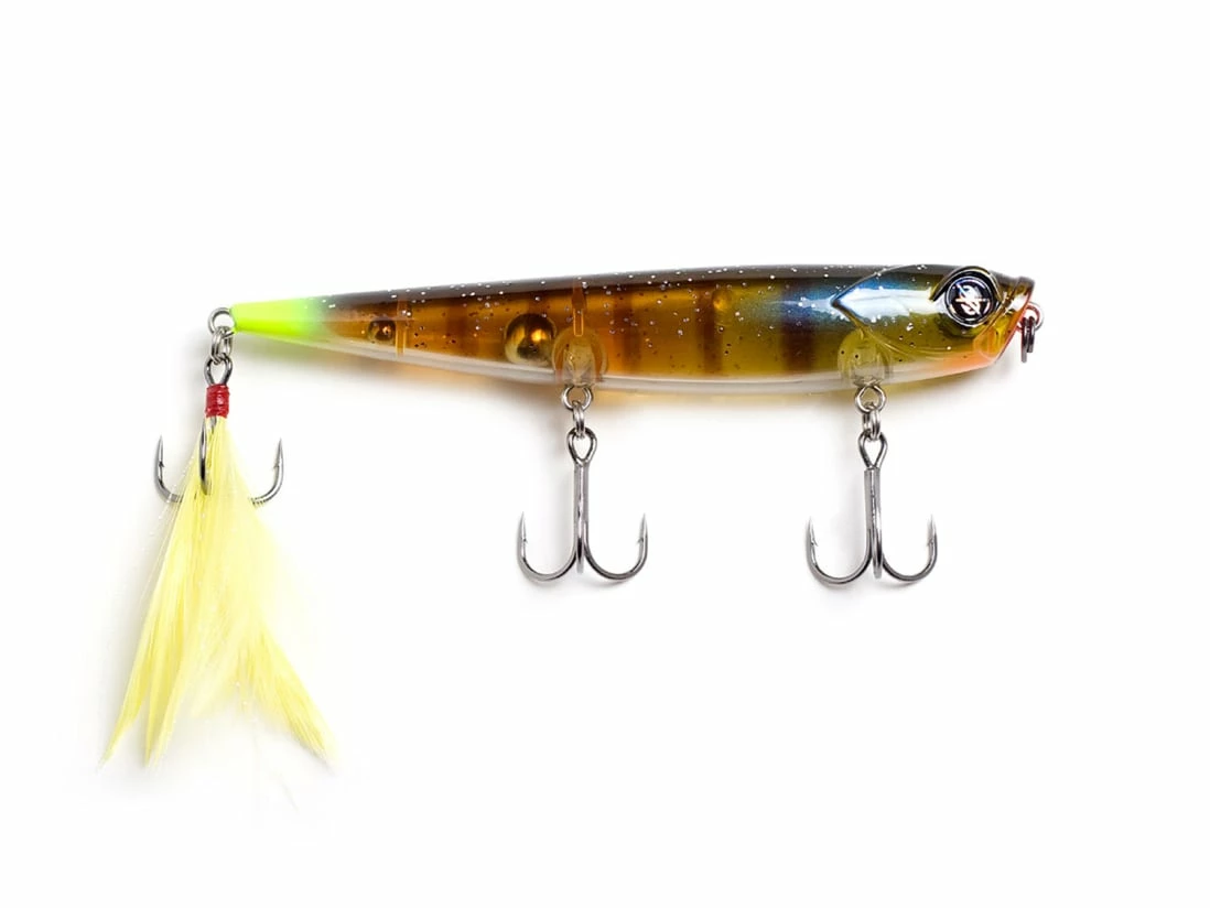 The Googan Squad Hound is a tight walking topwater bait with a cupped mouth for added splash as you bring this puppy in. It’s equipped with three sticky sharp, black nickel treble hooks, with a feathered back hook to help fool fish and keep them pinned.ย