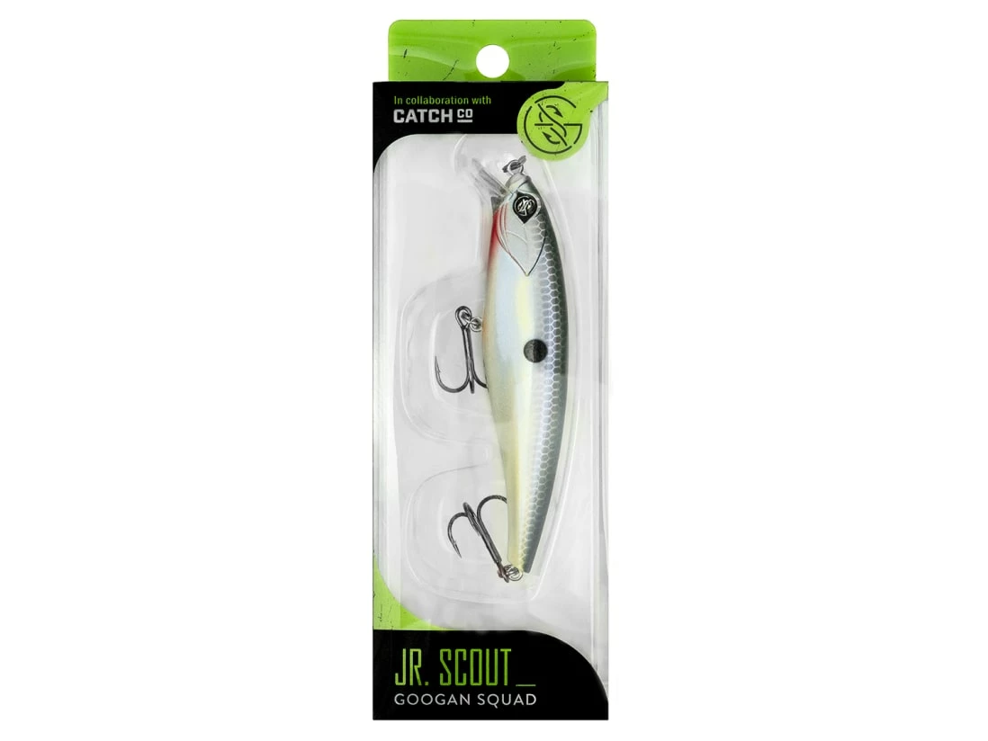 The Googan Squad Jr. Scout is a 3.5-inch hard-bodied jerkbait that looks and swims like a small baitfish โ the Googan Jr. Scout operates best on spinning rods with light line. Tie this bad dude on whenever bass are feeding on smaller minnows or shad. The small profile and tasty colorways help this little ripper get bites โ each Googan Squad Jr. Scout has a lifelike integrated lateral line that adds realism.