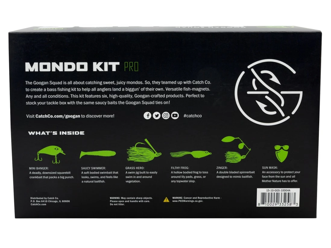Everything you need to go pro. Includes five of the best funky fish finishers in the game. Perfect for folks looking to step their game up to the big leagues. A Googan branded sun mask, loaded with swagger, for those long days on the water completes the package. Tie on what the Googans tie on and join the Mondo Mania.