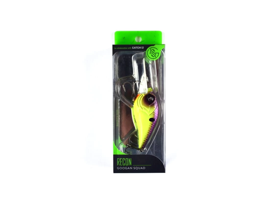The Googan Squad Recon is a round billed crankbait designed to hunt and deflect off cover in the 8-12 foot depth range. The Googan Squad Recon gets down to the intended diving depth quickly and starts banging against anything in its path. With each turn of the reel, youโll be creating a lively swimming action that is bound to stir up big fish. The Googan Squad Recon will stand out when fishing deep docks, grass lines, or quick breaks and drop-offs along the shoreline. Whenever the fish are holding at a moderate depth, tie on the Googan-approved Recon crankbait and start foolinโ fish.