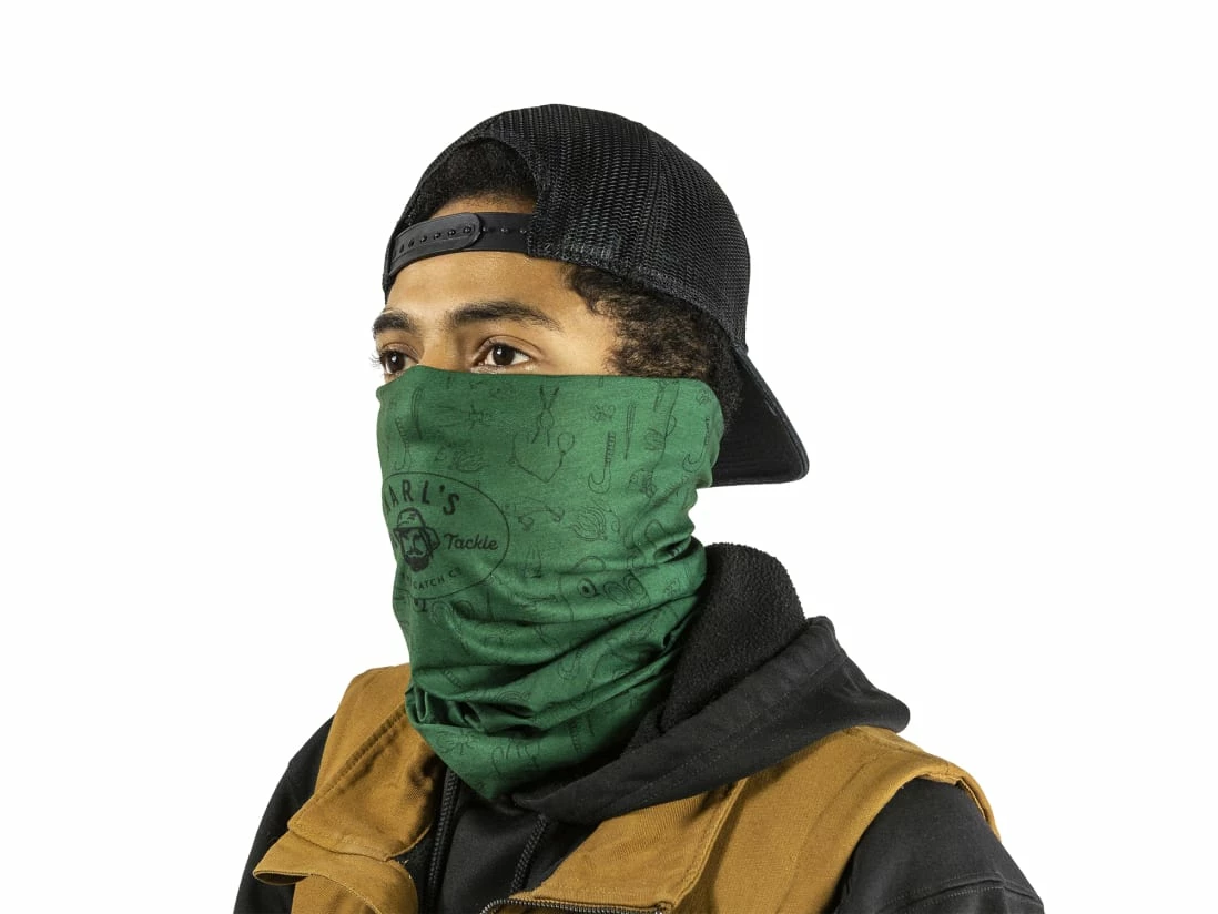 Protect your moneymaker and show your love for your favorite online tackle shop. Cover your neck, face, ears, and nose while out on the prowl for your next personal best. Bring your Necko anywhere and pull it out when you need a rag, sun protector, or extra layer on your face.