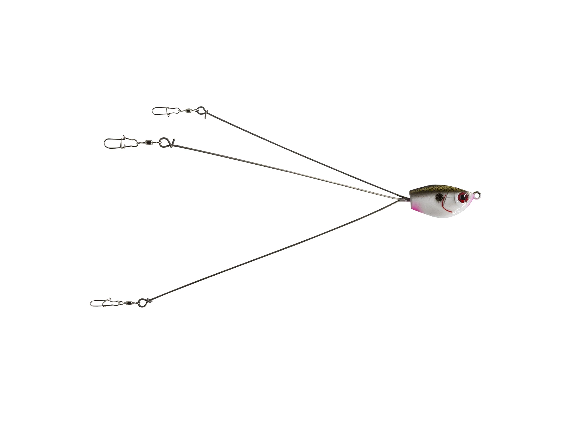 The Yumbrella 3 Wire Rig makes it easy to achieve a multi-bait presentation that triggers strikes from suspended bass, stripers, and other gamefish. The rig starts with a lifelike, contoured head that mimics the lead fish in a group of fleeing baitfish. Connected to the attractive central hub are three stainless- steel wire arms that have been heat-treated to deliver remarkable strength and flexibility. Premium snaps and swivels provide unparalleled performance. Add the Yumbrella 3 Wire Rig to your tackle box!